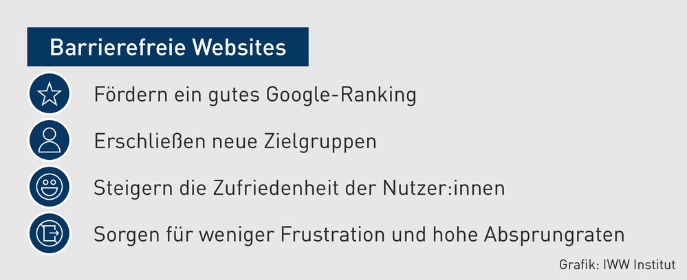 Eine Untersuchung der gemeinnützigen Organisation WebAIM aus diesem Jahr zeigt: 95 % der analysierten Websites enthalten Barrieren. Und das, obwohl gerade das Internet für viele Menschen mit Einschränkungen die wichtigste Schnittstelle zur Welt darstellt. Wenn Sie hier ein bewusst niedrigschwelliges Angebot schaffen, setzen Sie ein starkes Zeichen und erhöhen nebenbei Ihre eigene Reichweite.